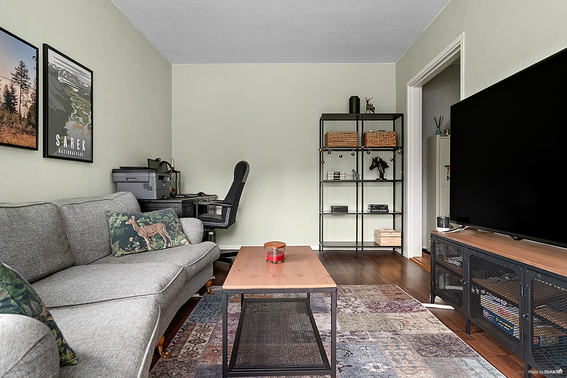 Lägenheten är ljus och välplanerad med ett generöst vardagsrum och ett funktionellt kök. Planlösningen skapar en rymlig känsla och gör det enkelt att umgås med familj och vänner. Området erbjuder närhet till naturområden, vilket gör det perfekt för promenader och utomhusaktiviteter. Med goda kommunikationer och närhet till service och bekvämligheter är detta en bostad som kombinerar det bästa av två världar.
