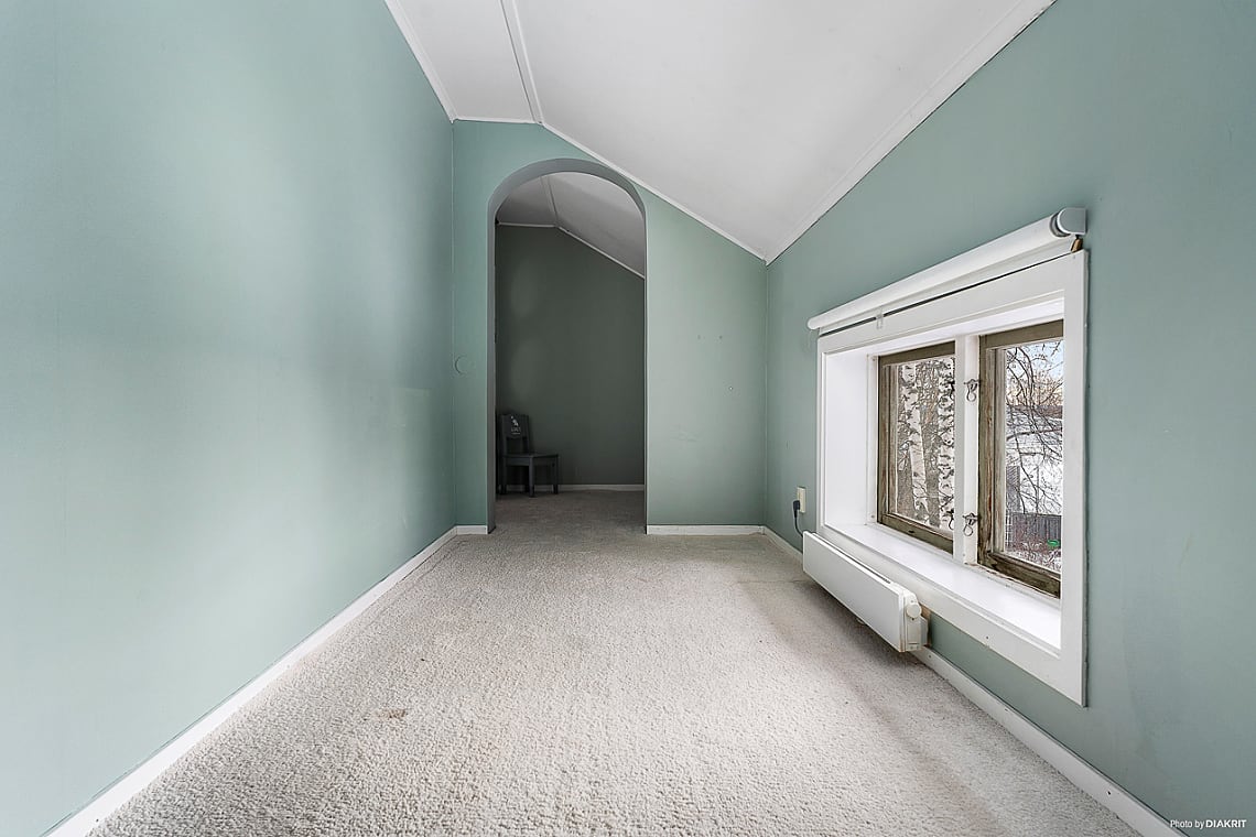 Ett mysigt sovrum med gröna väggar och en mjuk heltäckningsmatta. Extra utrymme i form av en mini-hall som ger ytterligare användningsmöjligheter.