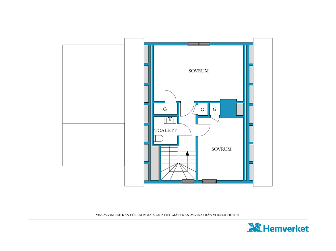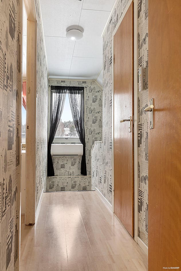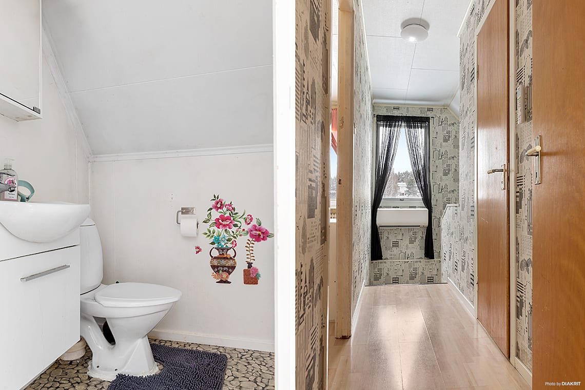 Här finns ingång till de två sovrummen samt toaletten. En inbyggd garderob erbjuder extra förvaring.