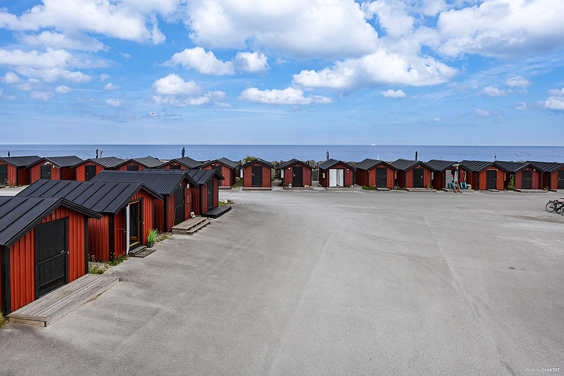 Området erbjuder både lugn och liv. På bara 350 meters promenadavstånd når du Snäckviken, en av Gotlands mest populära sandstränder med badbryggor och sommarrestaurang. Här finns även en mindre badplats inom området, idealisk för morgondopp och stilla stunder. Den välbesökta strandpromenaden passerar förbi och sträcker sig hela vägen till Almedalen i centrala Visby, endast tre kilometer bort – perfekt för en cykeltur eller kvällspromenad med havet som sällskap. Som medlem i Flundrevikens båtklubb har du tillgång till ett modernt klubbhus med välutrustat kök, konferens- och samlingslokal, duschar, toaletter samt vatten- och diskmöjligheter vid hamnen. Här råder en varm gemenskap med återkommande tillställningar såsom Valborgsfirande och sommarfester med levande musik. På området finns även möjlighet att hyra förråd. Gratis parkering erbjuds, och vill du kunna köra in med bil till boden finns möjlighet att mot en engångskostnad få en blipp som öppnar bommen.
