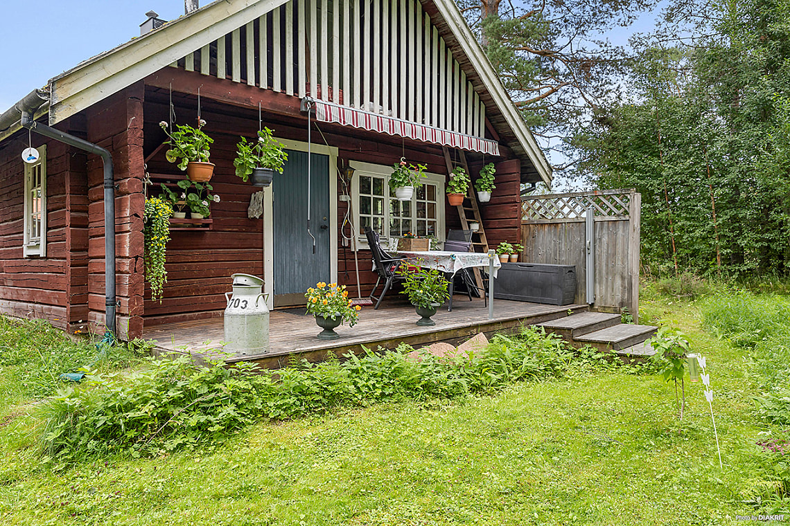 Välkommen till detta charmiga timmerhus med stor, lummig trädgård och närhet till vattnet – perfekt för både avkoppling och socialt umgänge. Fastigheten består av tre byggnader: huvudhuset som används som bostad, ett hus med bastu, dusch, toalett, gästrum samt ett rymligt allrum/arbetsrum, och ett tredje hus som fungerar som förråd. Här finns dessutom möjlighet till övernattning för gäster. Badrummet i bostaden är renoverat så sent som 2022 och från altanen i söderläge kan du njuta av solen och den fina trädgården. En perfekt kombination av charm, funktion och närhet till natur och vatten.