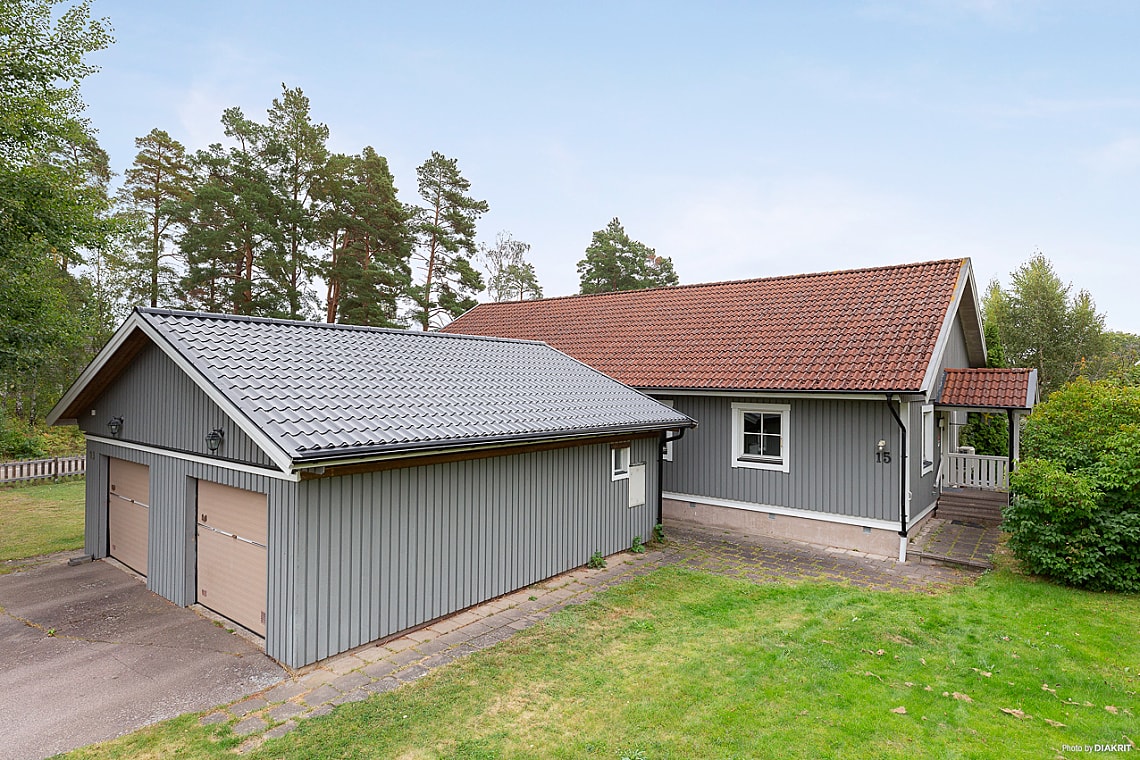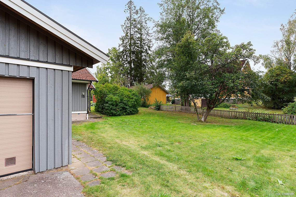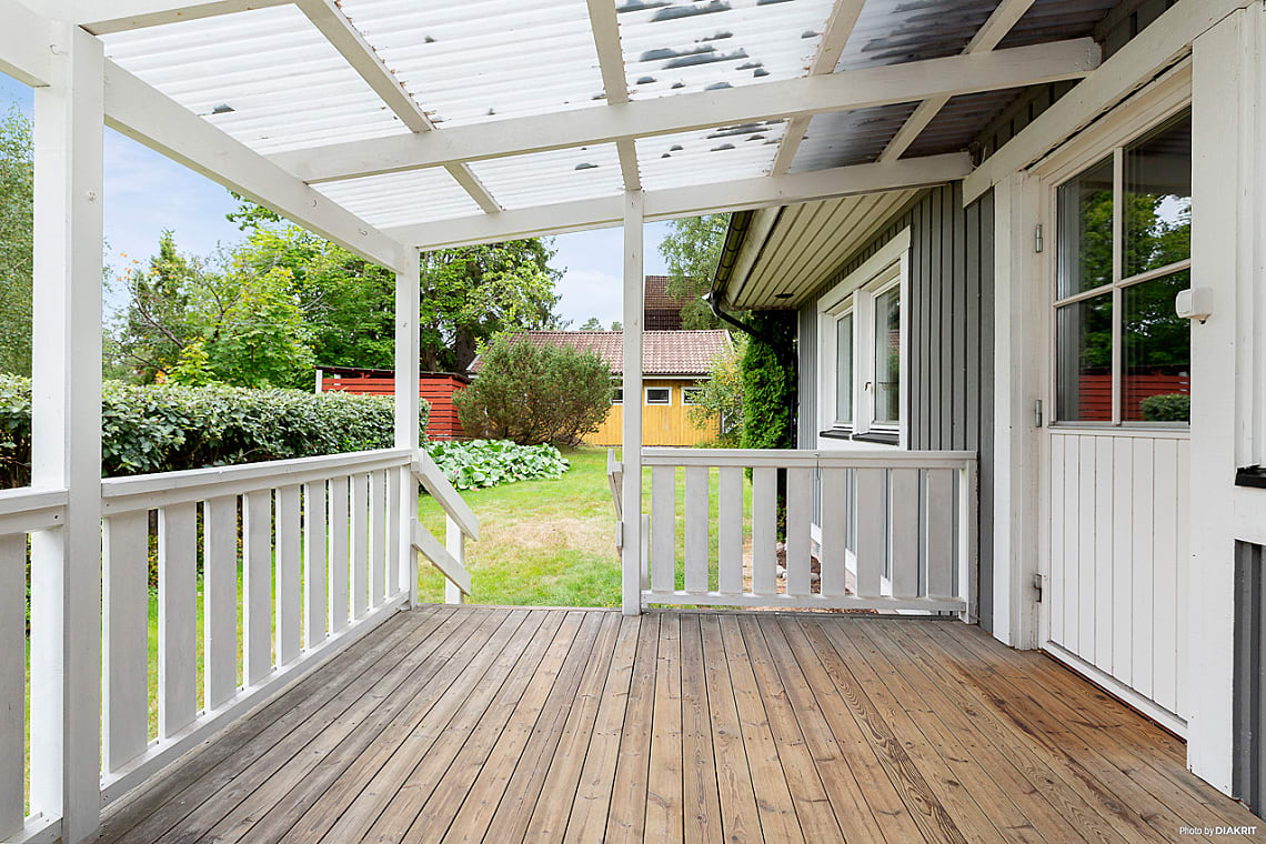 I söderläge finns en rymlig altan med gott om plats för utemöbler vilken erbjuder en fin utsikt över tomten.