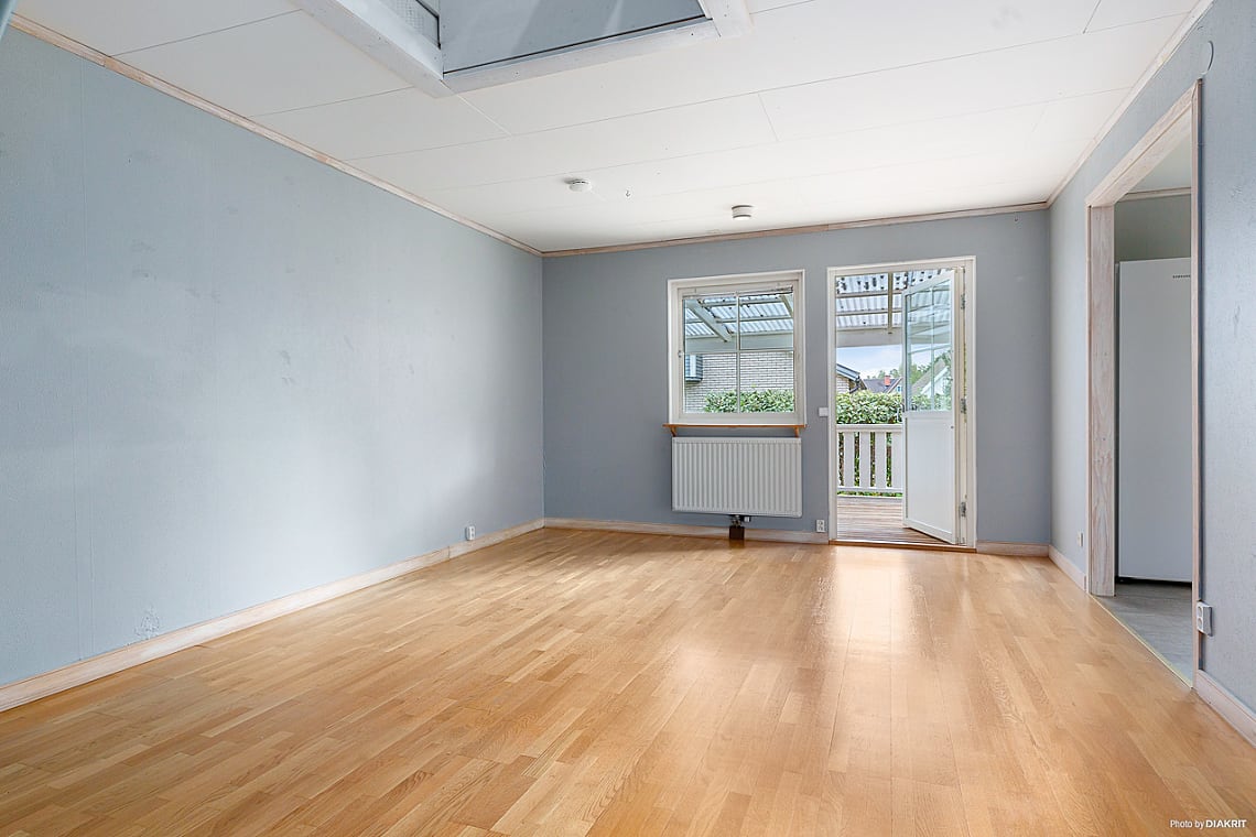Rymligt vardagsrum med vacker ekparkett och fint ljusinsläpp. Gott om plats för soffmöblemang och matbord för sociala umgängen.