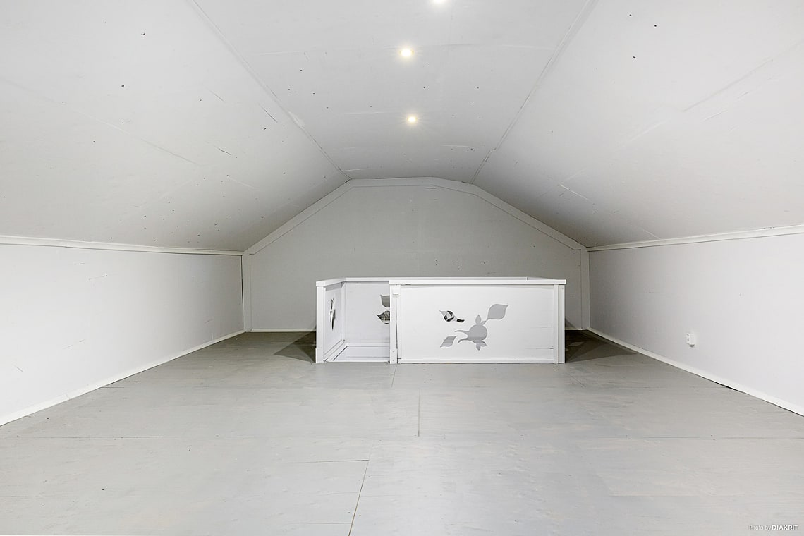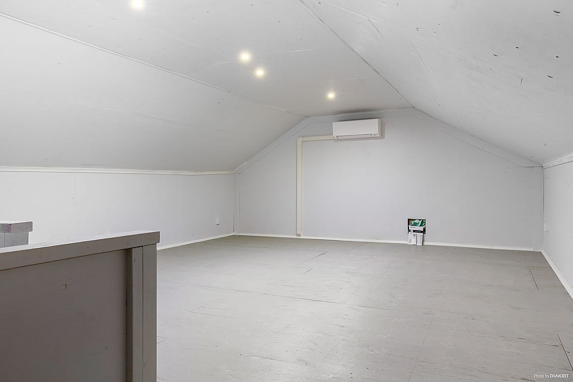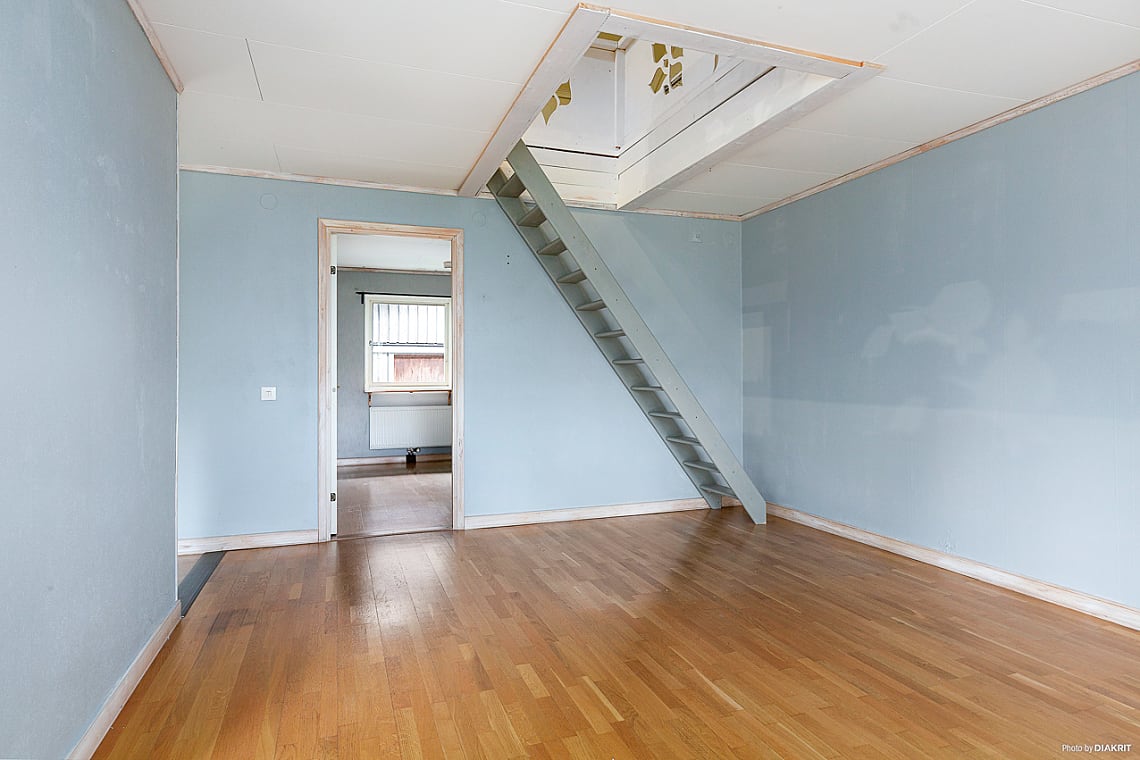 Vindsvåningen inreddes 2022 och erbjuder extra yta med luftvärmepump och el indraget – perfekt som extra sovrum, kontor eller hobbyutrymme.