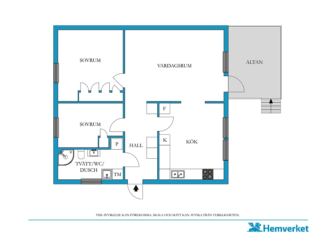 Två sovrum med plats för förvaring i garderober. I det större får man med lätthet plats med en dubbelsäng och övrigt möblemang. Det mindre rymmer enkelsäng med tillhörande möblemang och är perfekt som barnrum eller kontor.