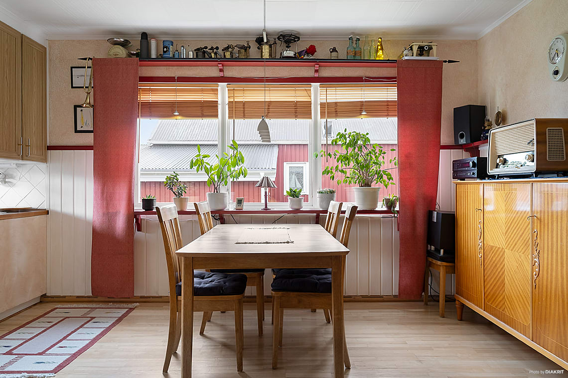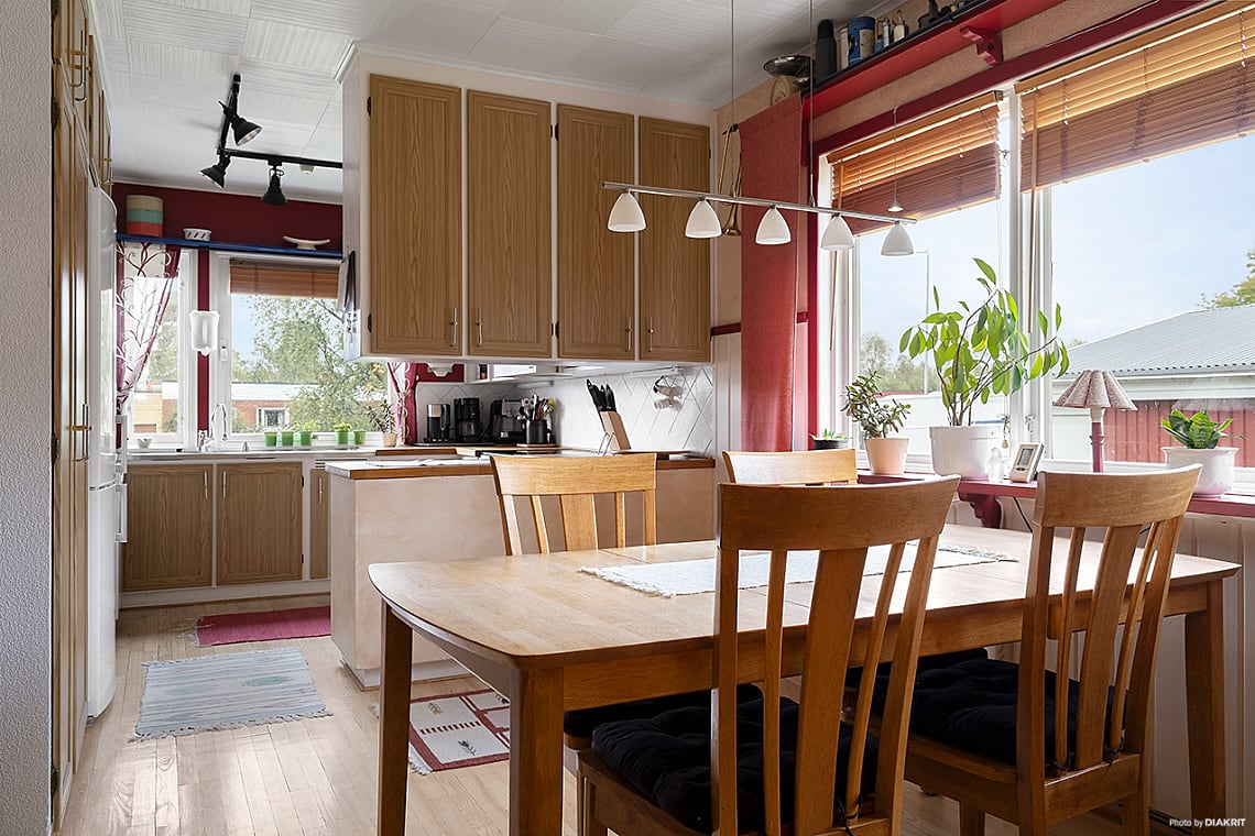 Ljust och trevligt vardagsrum med plats för soffgrupp och matplats.