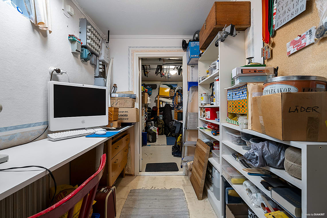 Mindre sovrum som idag används som klädkammare och extra förråd. Passar bra som barnrum eller gästrum.