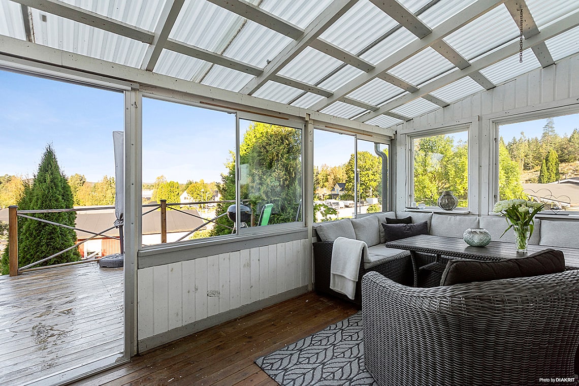 Utgång till den inglasade uteplatsen och som tar en vidare ut till den rymliga altanen.