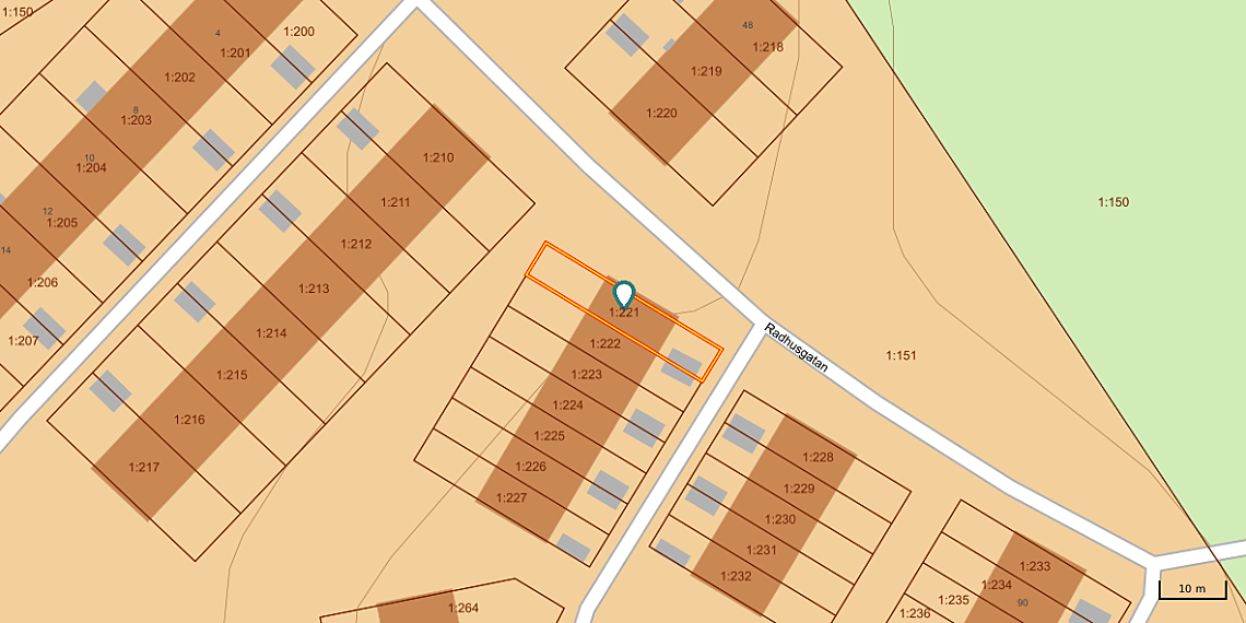 Ändamål: Grönområden, lekplatser, parkeringsplatser, förbindelseleder, dagvattenledningar, dräneringsdiken.