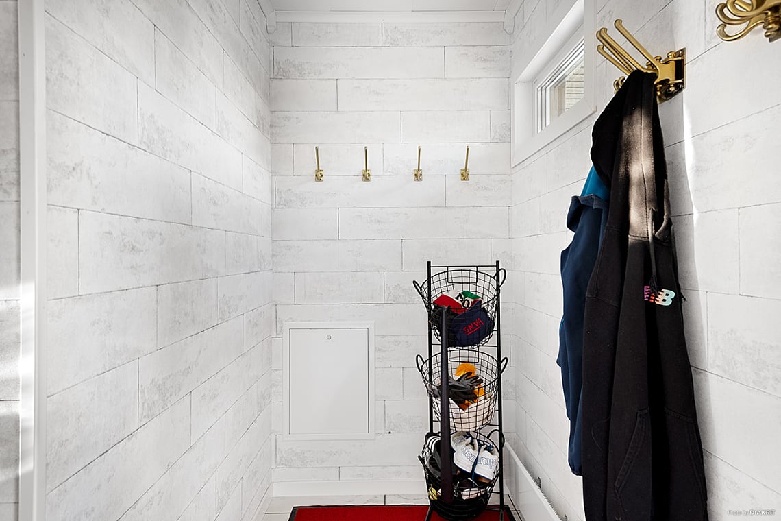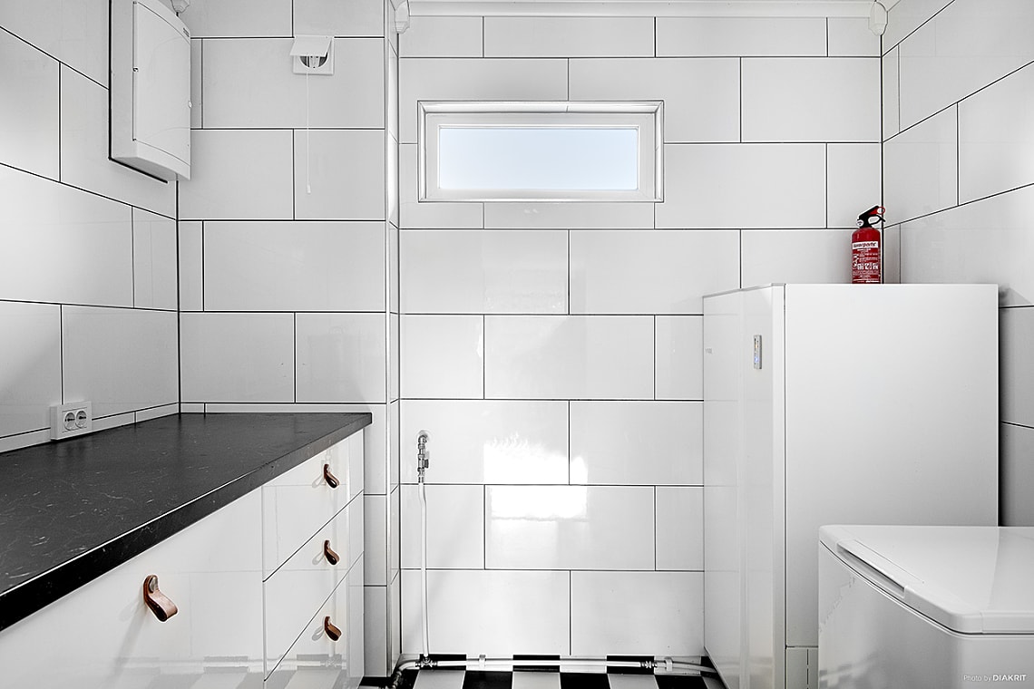 I anslutning till köket finns en ljus och praktisk tvättstuga.