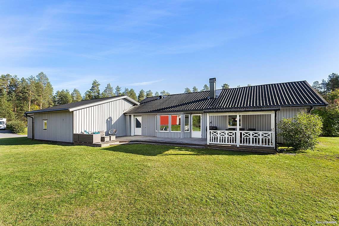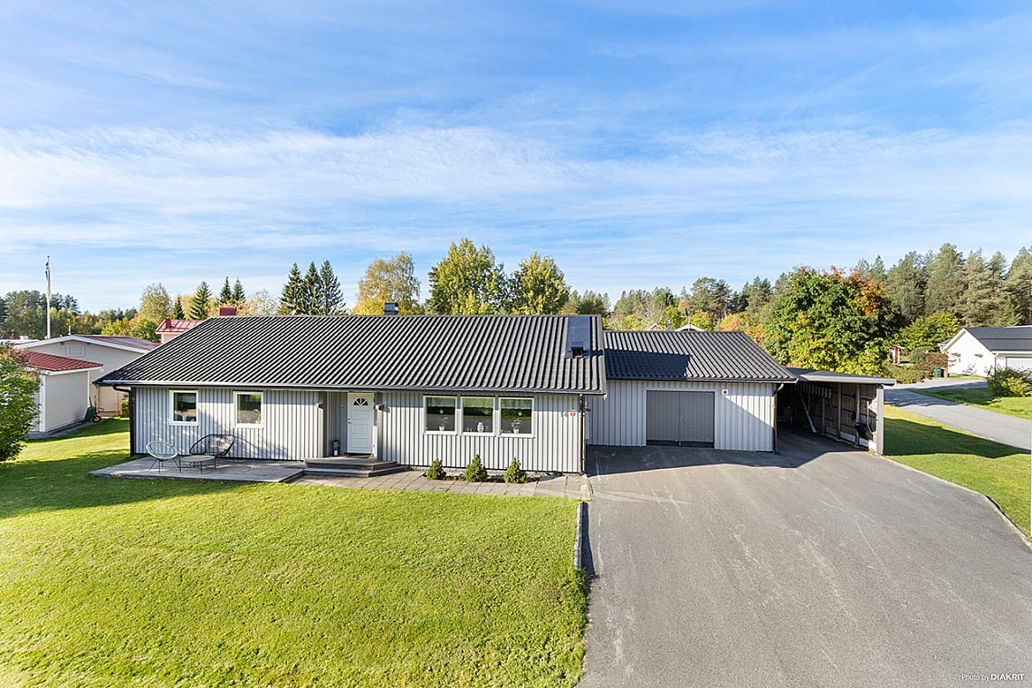 Välskött bostad i barnvänligt område med 30 km/h i hela kvarteret. Här finns asfalterad uppfart, carport och stort garage. Taket byttes 2020 och modern öppen spis sprider både värme och trivsel. Fastigheten erbjuder altan på både fram- och baksida, lättskött trädgård anpassad för robotgräsklippare samt bastu med elaggregat.Fiber är indragen och uppvärmningen sker via vattenburen fjärrvärme. Smidig groventré via garaget direkt in till tvättstuga.
