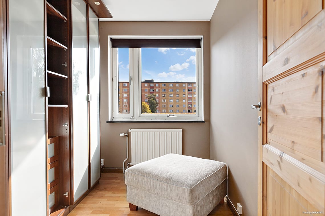 Används idag som förvaringsrum med garderober, men kan även fungera som walk-in-closet.