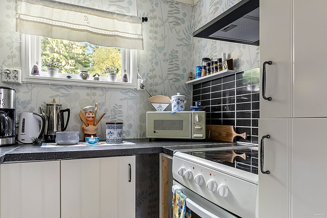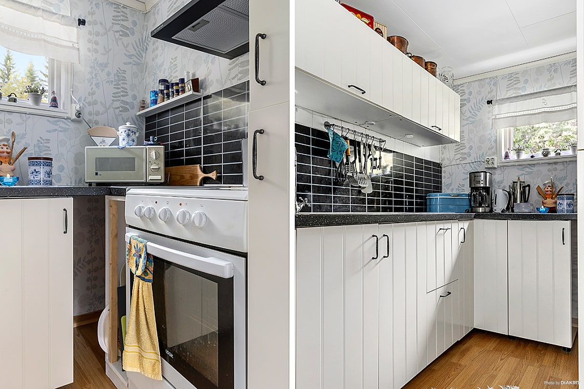 Trevligt kök som erbjuder goda förvaringsmöjligheter och bänkyta. Köket är utrustat med Kyl/frys, spis/ugn och fläkt.