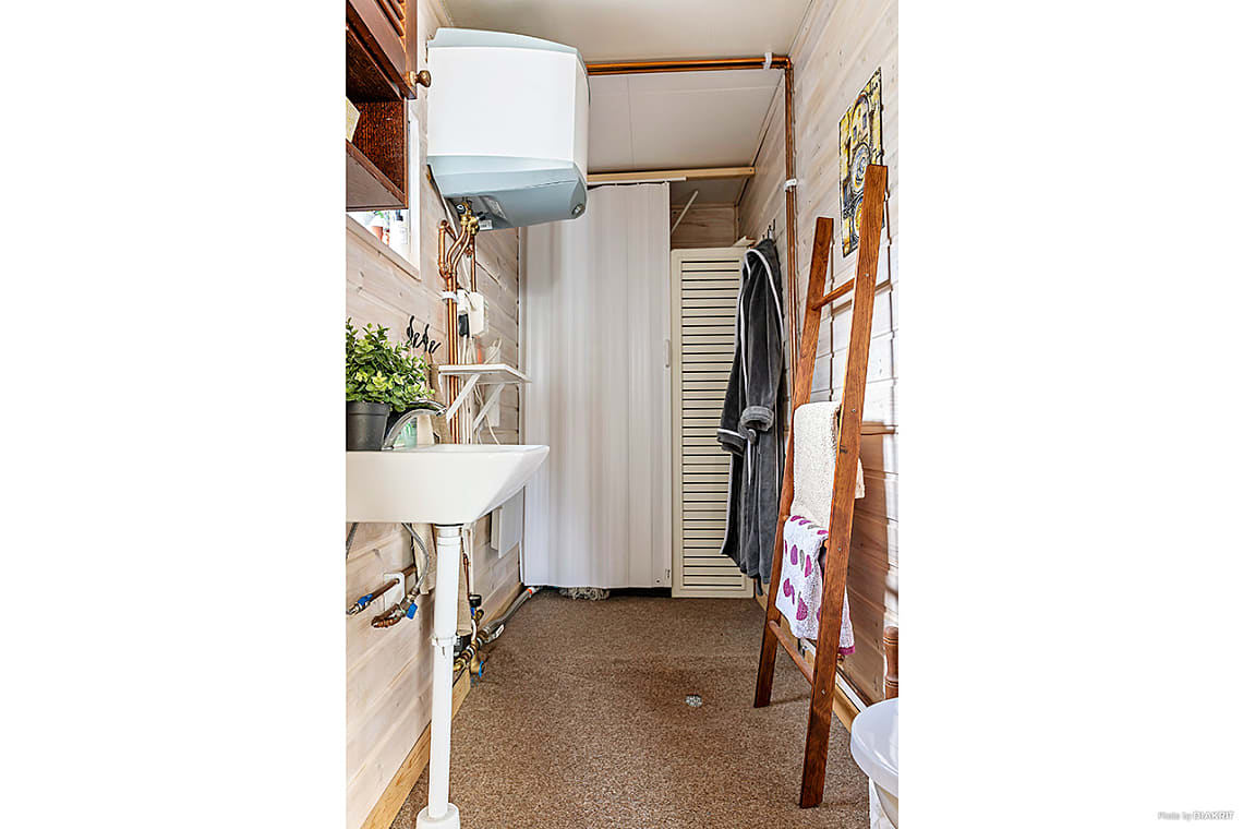 Trappa upp till sovloft. Här finns även en intilliggande matplats.