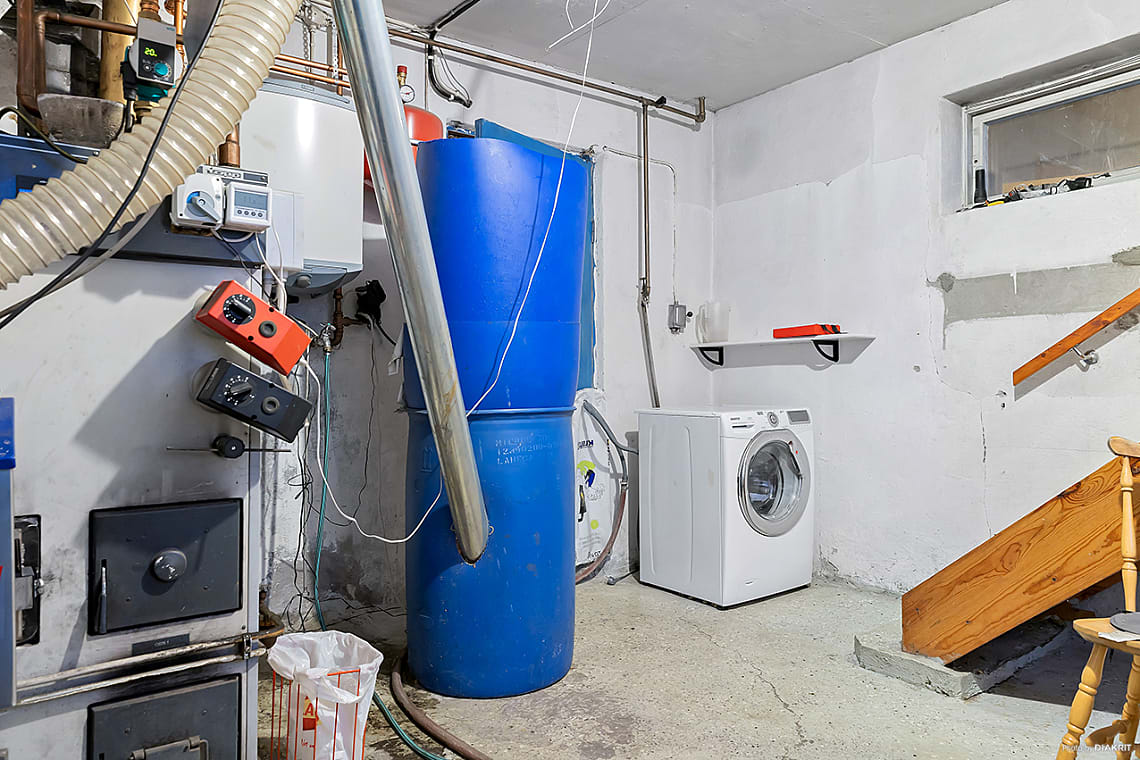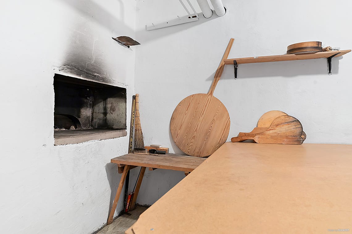 I källarplanet finns extra förvaringsmöjligheter och en charmig bakugn som skapar en rustik och hemtrevlig känsla – perfekt för den som gillar traditionellt bak och matlagning.