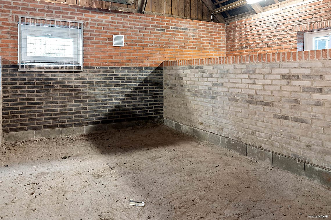 Nyrenoverat stall med sadelkammare och fyra stora boxar, totalt cirka 100 kvm.