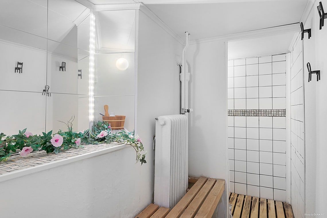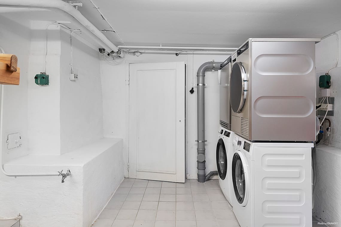 Källarplanet kompletterar fastigheten med en traditionell matkällare, en bastu med dusch för gäster som söker lite extra avkoppling, samt en välutrustad tvättstuga med två tvättmaskiner, två torktumlare och goda torkmöjligheter.
