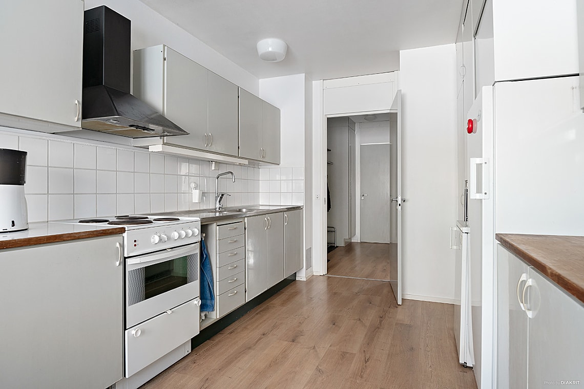 Köket är utrustat med ugn, fläkt samt kyl och mindre frys.