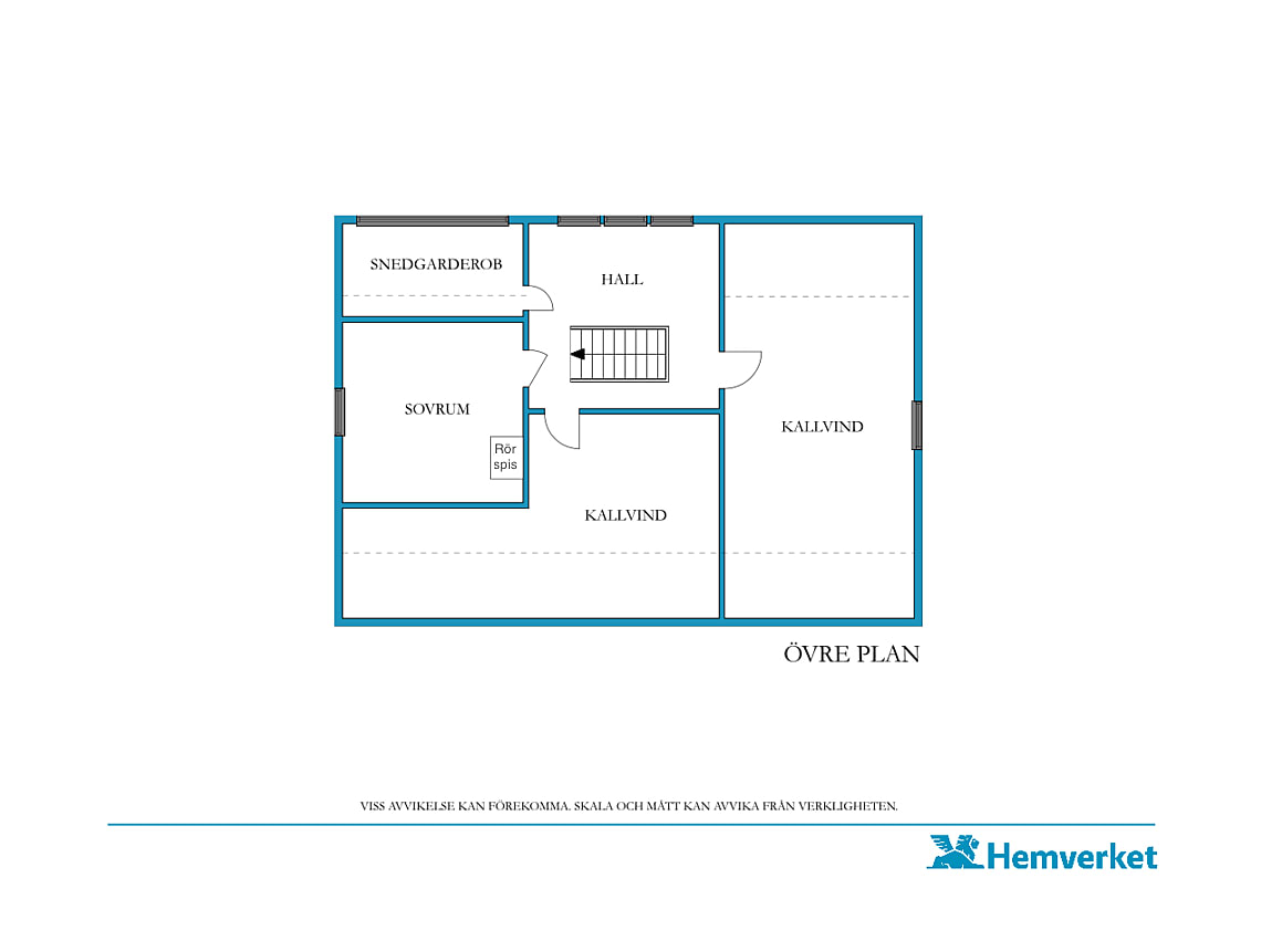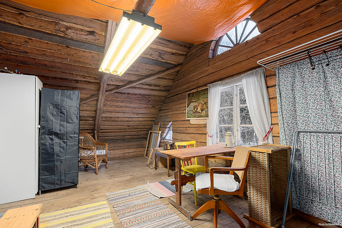 På övervåningen finns även två större oinredda kallvindar, som till exempel kan utvecklas för att inrymma badrum, fler sovrum eller gillestuga.