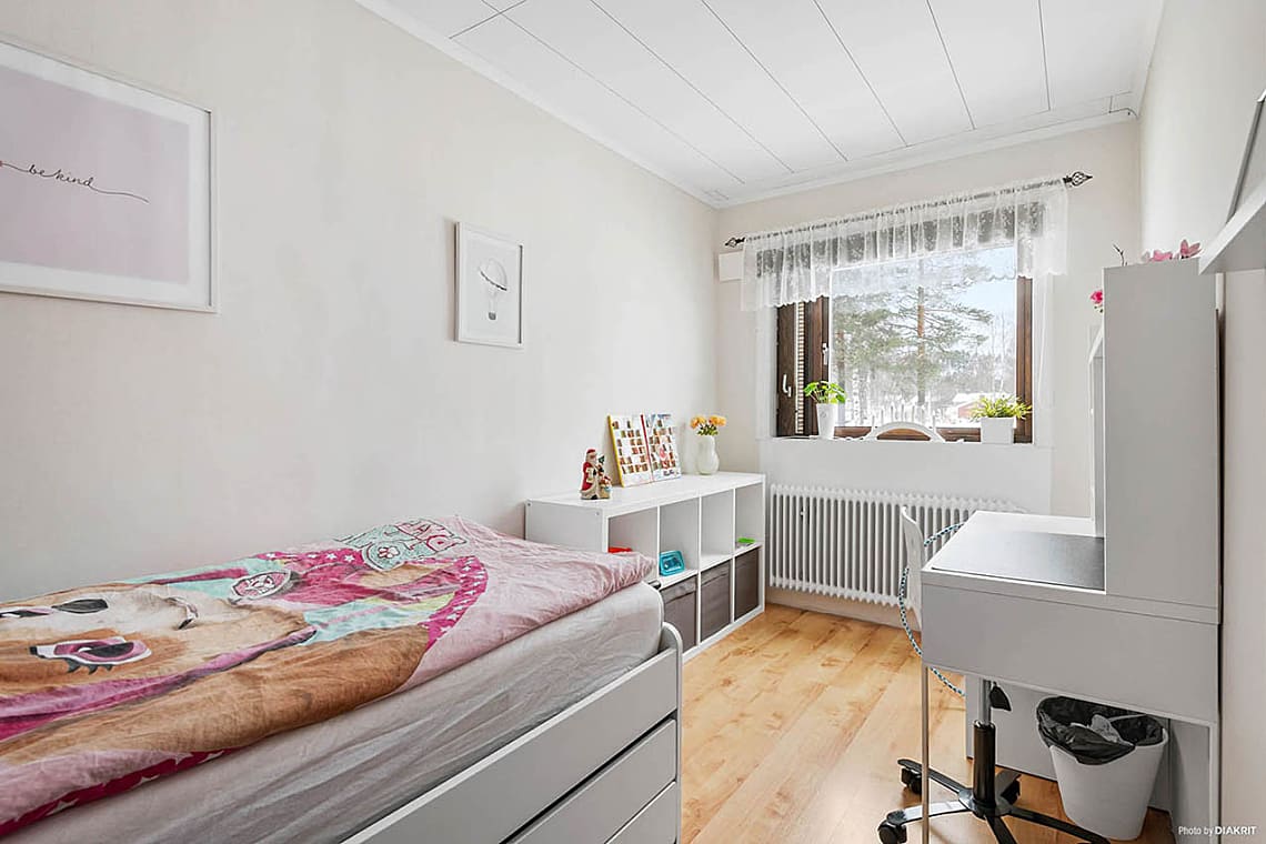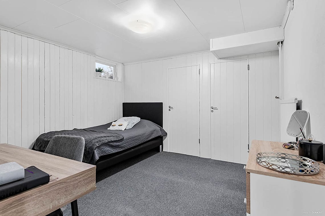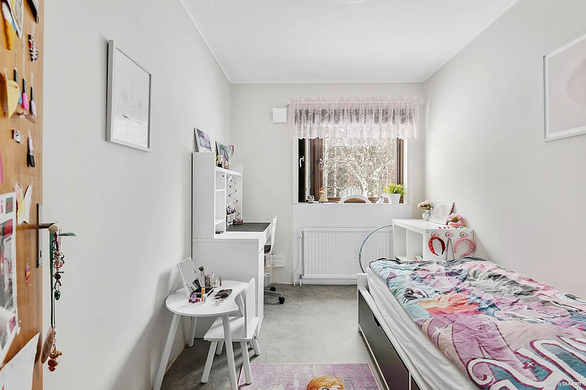 Mindre sovrum med plats för säng och tillhörande möbler.