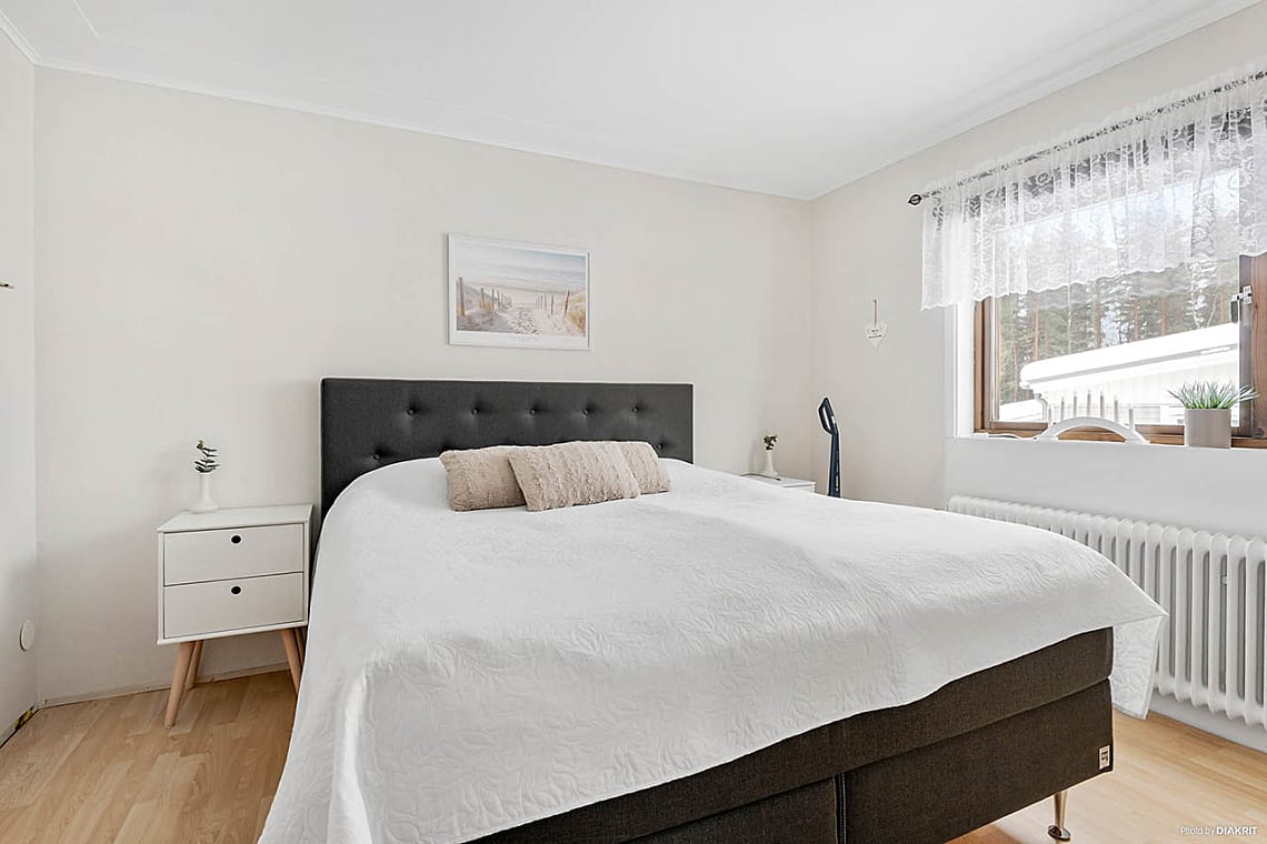 Större sovrum med plats för dubbelsäng och tillhörande möbler.