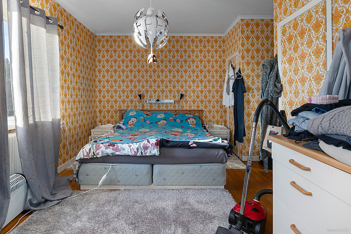 Här finns plats för dubbelsäng med tillhörande sängbord och förvaringsmöbel.