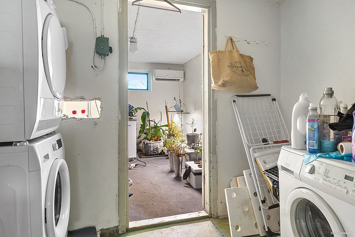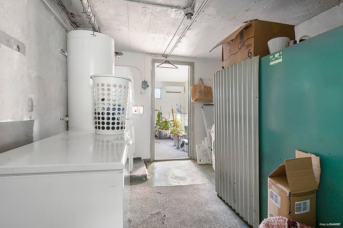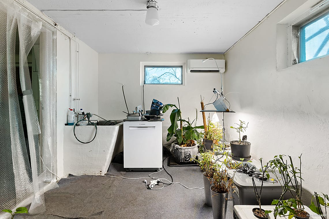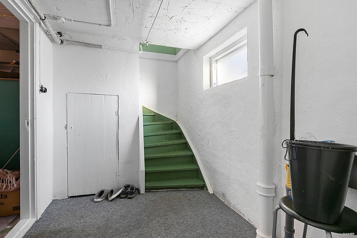 Källarplan inrymmer mycket goda förvaringsmöjligheter samt tvättutrymme med tvättmaskin och torktumlare.