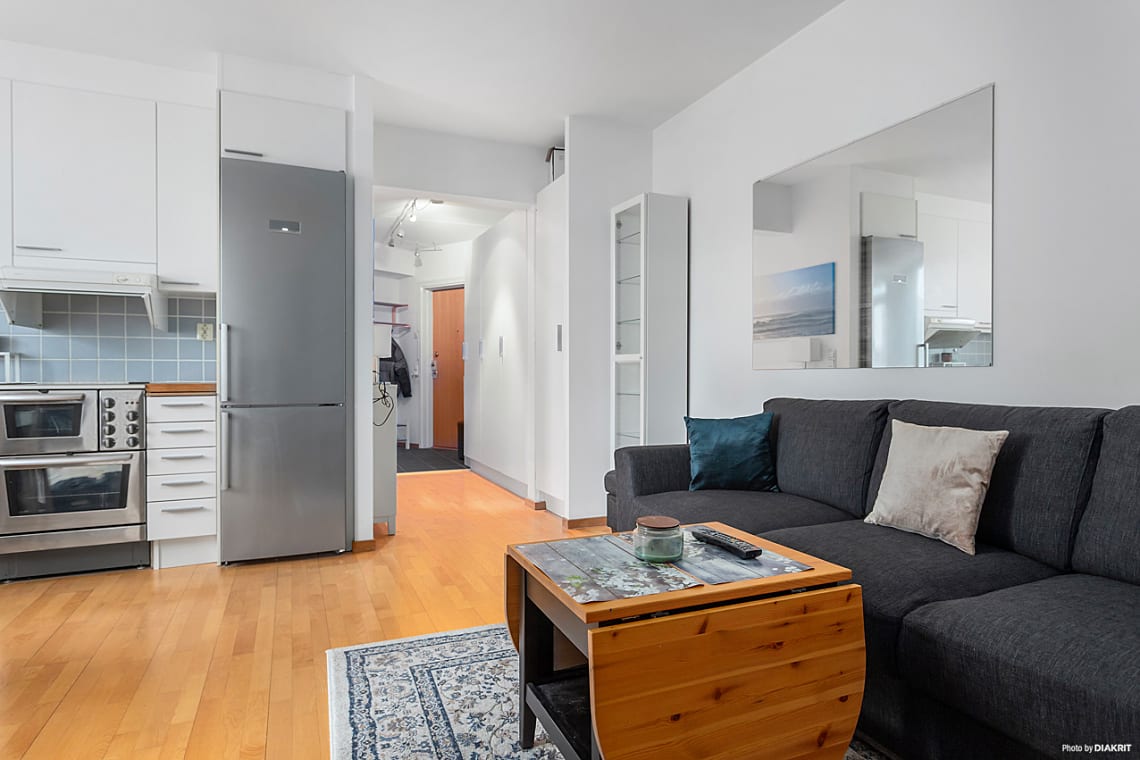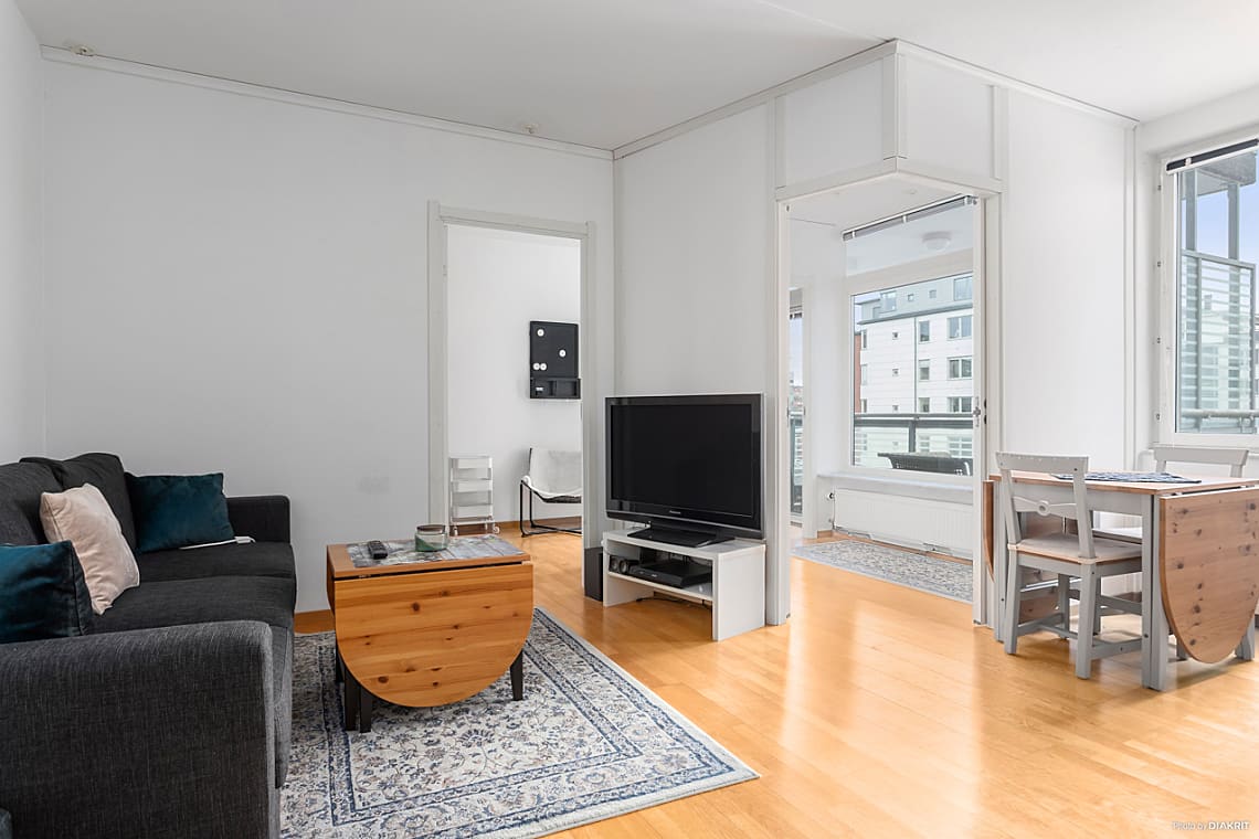 Välkommen till ett kvadratsmart och modernt hem med genomtänkt planlösning och ett fantastiskt naturligt ljusinsläpp. Bostaden präglas av öppen planlösning mellan kök och vardagsrum, vilket skapar generösa sällskapsytor trots den yteffektiva utformningen. Härifrån nås även den soliga balkongen som förlänger bostaden under årets varmare månader.
