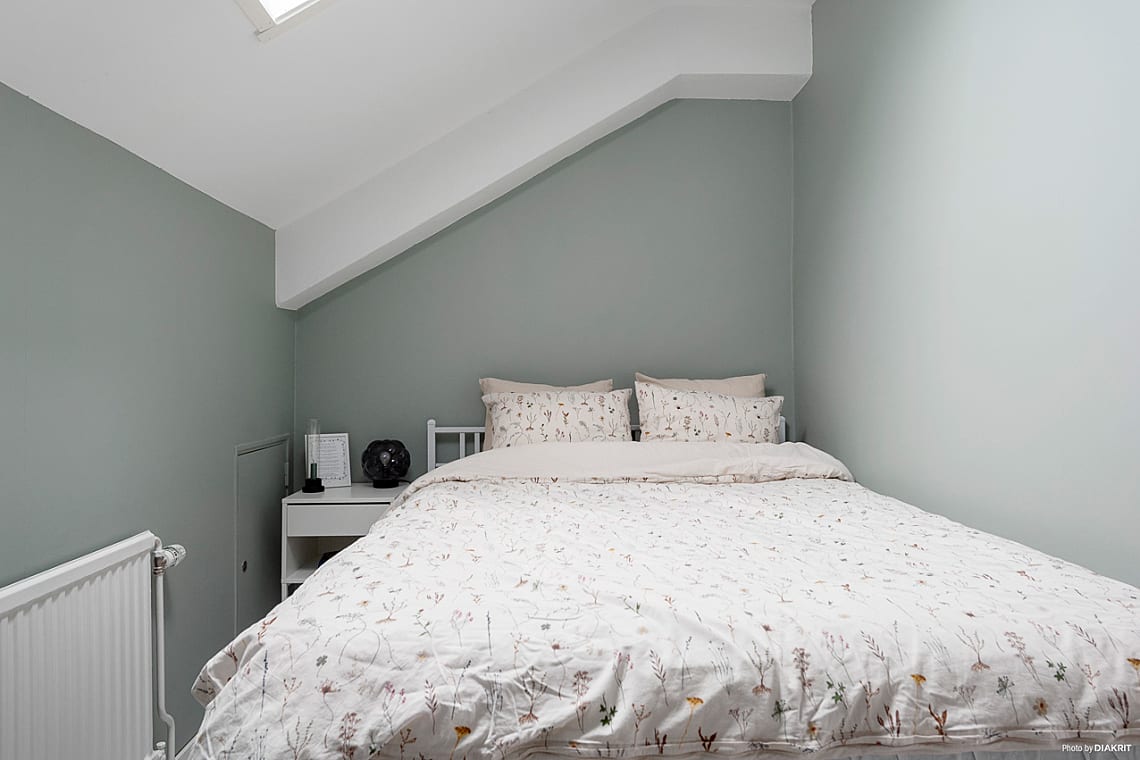 Mysigt sovrum med plats för säng med tillhörande sängbord .