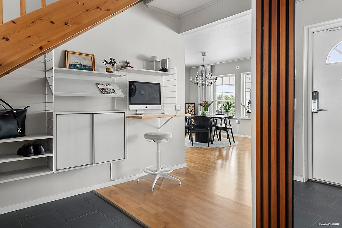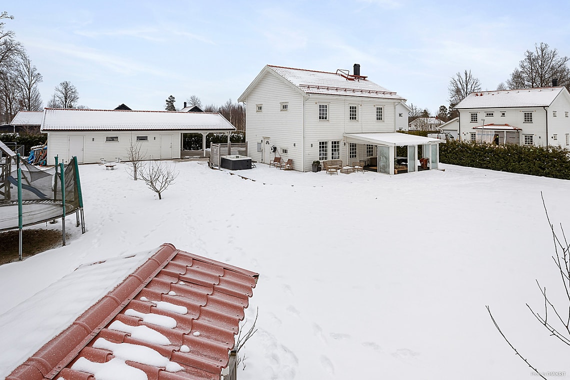 Huset erbjuder flera flexibla sällskapsytor, bland annat ett extra allrum på övre plan, samt hela fyra sovrum samlade på samma våningsplan, perfekt för familjelivet. Två badrum och en praktisk tvättstuga bidrar till en smidig vardag.