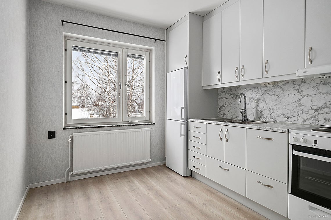 Köket, badrummet och golven renoverades omkring 2022/2023 och håller en modern och tilltalande standard. Köket erbjuder smarta förvaringslösningar och en funktionell planlösning. Det tidigare skafferiet/städrummet byggdes om till en praktisk garderob under 2024, vilket ger extra förvaringsutrymme.