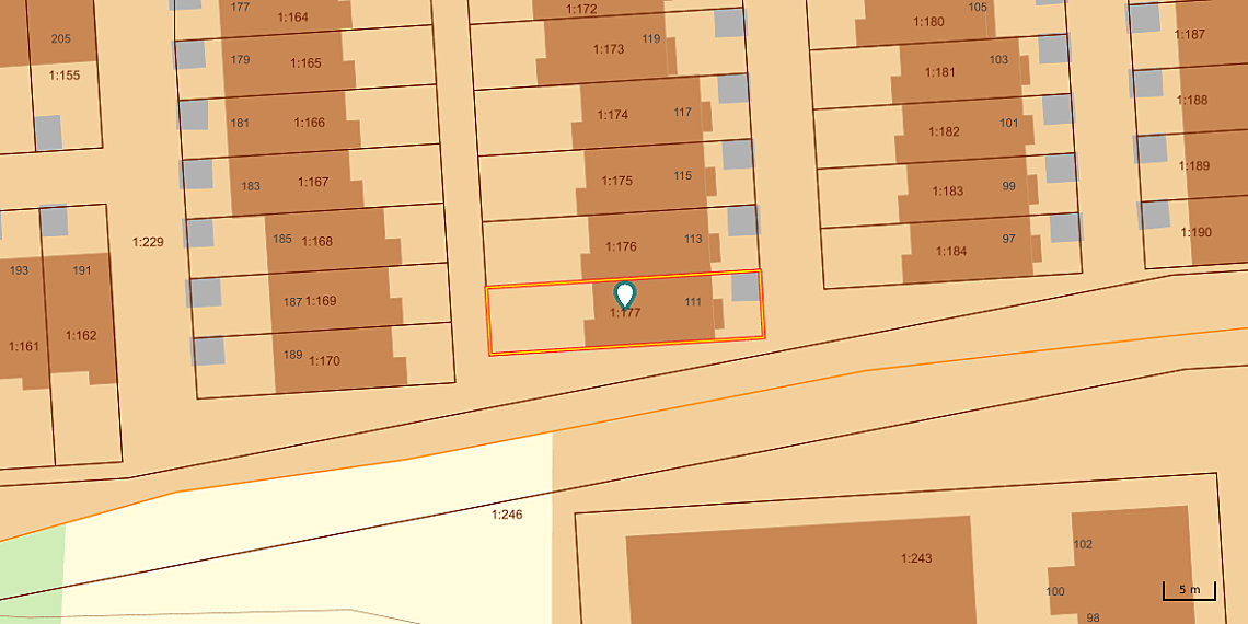 Ändamål: Vägar, Vattenförsörjning, Avloppsanläggning, Radio, TV och/eller tele, Elledning och/eller belysning, Grönområden, Garage och/eller parkering