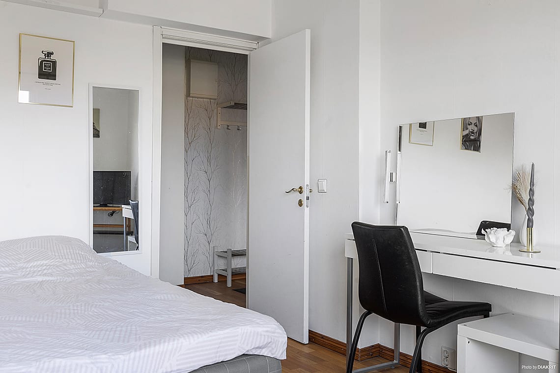 Här finns plats för dubbelsäng med tillhörande sängbord. Flertalet garderober för praktisk förvaring.